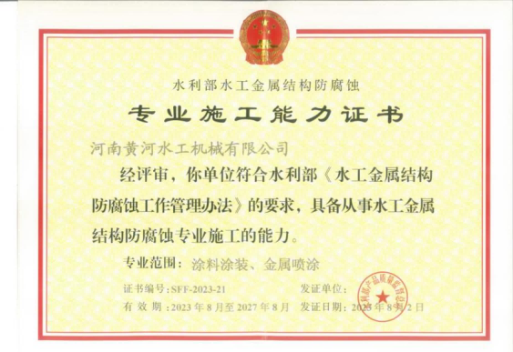 沛_黄河水工机械有限公司位于沛_省新乡市长垣县开发区内,是一个以刉水工金属结构及配套讑֤Z的专业生产公司家? 全公司占?万^方米Q徏{面U?万^方米Q拥有大型标准厂?2座。对于大型、超大型工g的铸、锻、R、镗、铣、钻、冷热机械加工和卷制、折弯、校q뀁整形、自动割焊、无损探伤、压力冷作加工具有丰富的加工制作l验? 公司h标准化的L除锈车间、大型抛丸R间、喷淋光氧一体化的喷漆R_q于2023q?月取得了水利部水工金属结构防腐专业施工能力证书? 我公司生产制造的水工金属l构主要产品有:大型Ud式启闭机、大型固定卷扬式启闭机、各U型h污机、大型弧形门机、大型^面定轮(滑动Q门机、超大型拦污栅、؜凝土拌和楹{散装水泥仓{各U水利水电金属结构及配套讑֤{。十q来Q我公司在水利、水电行业中辛勤耕耘,产品遍及全国各地。品覆盖山ѝ福建、陕ѝ新疆、山东、河南、河北、安徽、宁夏、甘肃、青辽宁、天z、广东、湖北等全国各地。我公司产品以优良的质量Q可靠的性能正在众多水利枢纽、水电项目及其它重要目设施中发挥着重要作用? 质量是成功的保证Q用戯上,提供优质产品Q让֮100%的满意是黄河公司人永恒的q求。我公司利通过ISO9001pd惯标认证。质量管理体pd全完善,技术、生产、检力量雄厚,通用与专用工装设备配套齐全,日臻先进。品质量上乘,性能优良Q售后服务及Ӟ赢得了广大业d使用者的信Q和高度评P万家寨水利枢U、小底水利枢纽{诸多国安点工E均采用q我公司产品? 我公司徏公司七年来,在水利水电制造行业中勇于开拓不断前q,获得了巨大的成功。我公司永q遵循“恪守信誉、质量第一、用戯上”的宗旨Qؓ国内、国际水利水电事业做出新贡献?/span>